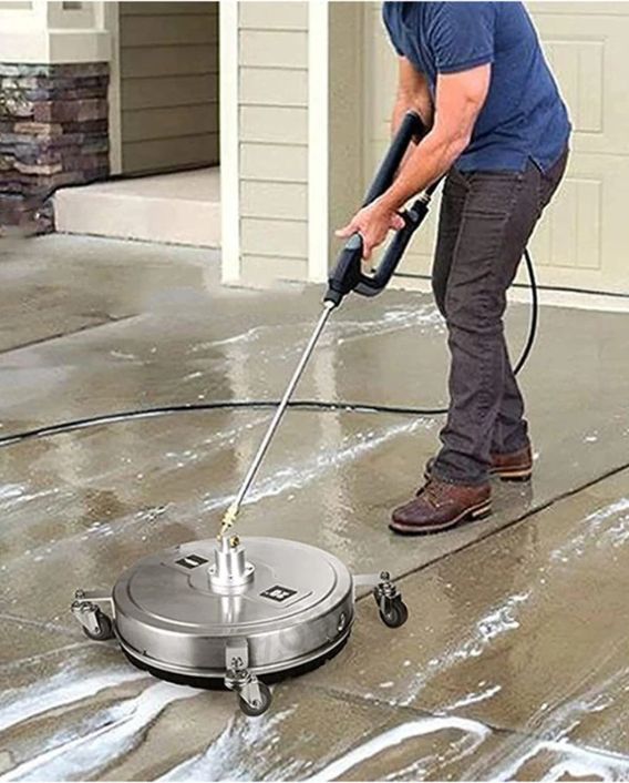 Power washing uses hot water and high pressure to clean tough stains and grime.